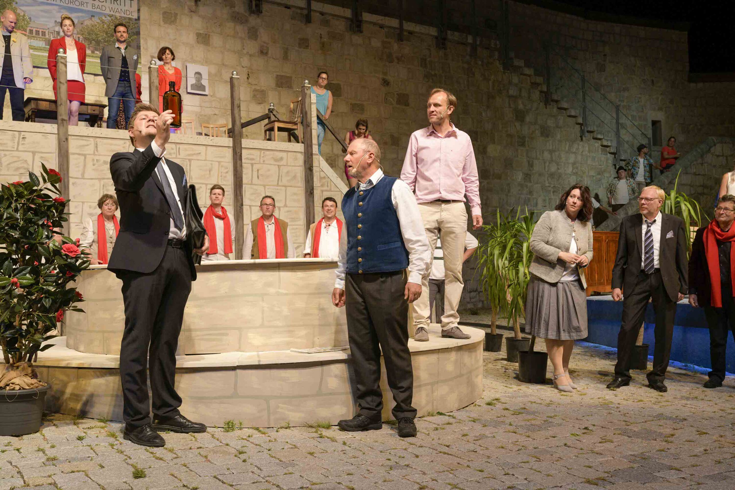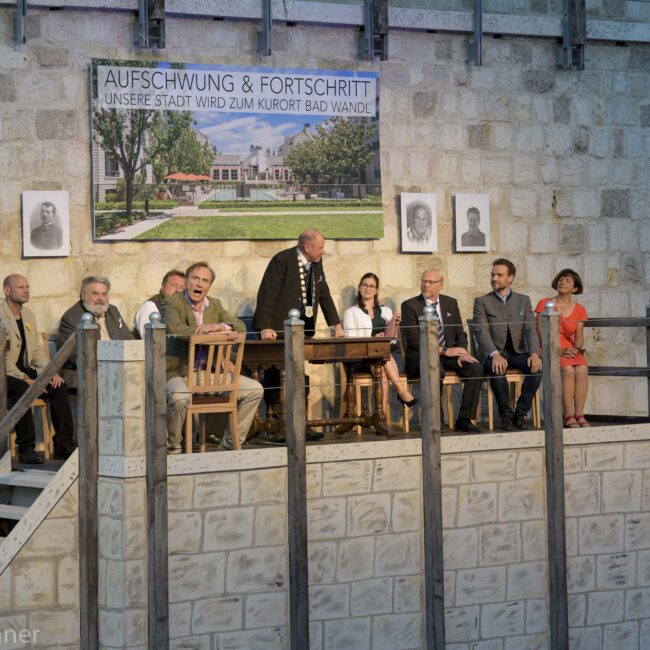 Dieses Stück ist eine ins Dialektal-Komödiantische gewendete Überschreibung von Henrik Ibsens „Ein Volksfeind“, das im Rahmen der Agnes-Bernauer-Festspiele in Vohburg uraufgeführt wurde. Weil am dortigen Amateur-Ensemble über 100 DarstellerInnen beteiligt sind, musste die ursprüngliche Besetzung um viele weitere Figuren erweitert werden, so kamen beispielsweise ein Ortschor, Handwerker und die Szenen beständig kommentierende Marktfrauen dazu; auch eine Kappelle und eine Kindergruppe mussten intergiert werden. Der eigentliche Grundkonflikt wurde aber beibehalten: Sind Ökonomie und Ökologie in einer demokratischen Gesellschaft Gegenpole und findet sich schlussendlich eine Lösung? Das ist eben auch die Frage, die sich den BürgerInnen im fiktiven Ort Bad Wandl stellt.